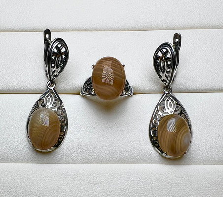 1 место - комплект с коричневыми агатами (кольцо 18р)