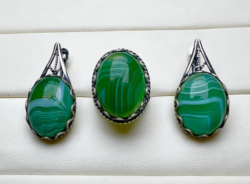 1 место - комплект с зелеными агатами (кольцо 17р)