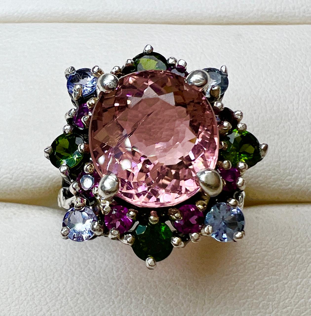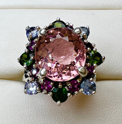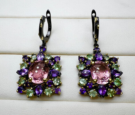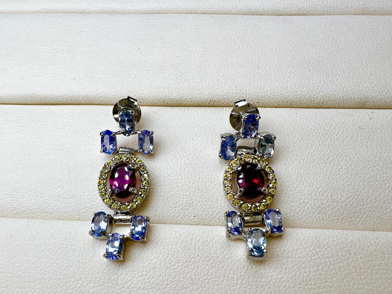 Серьги с гранатами, танзанитами и желтыми сапфирами