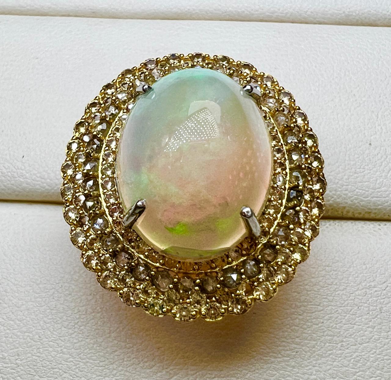 Кольцо с эфиопским опалом и желтыми сапфирами